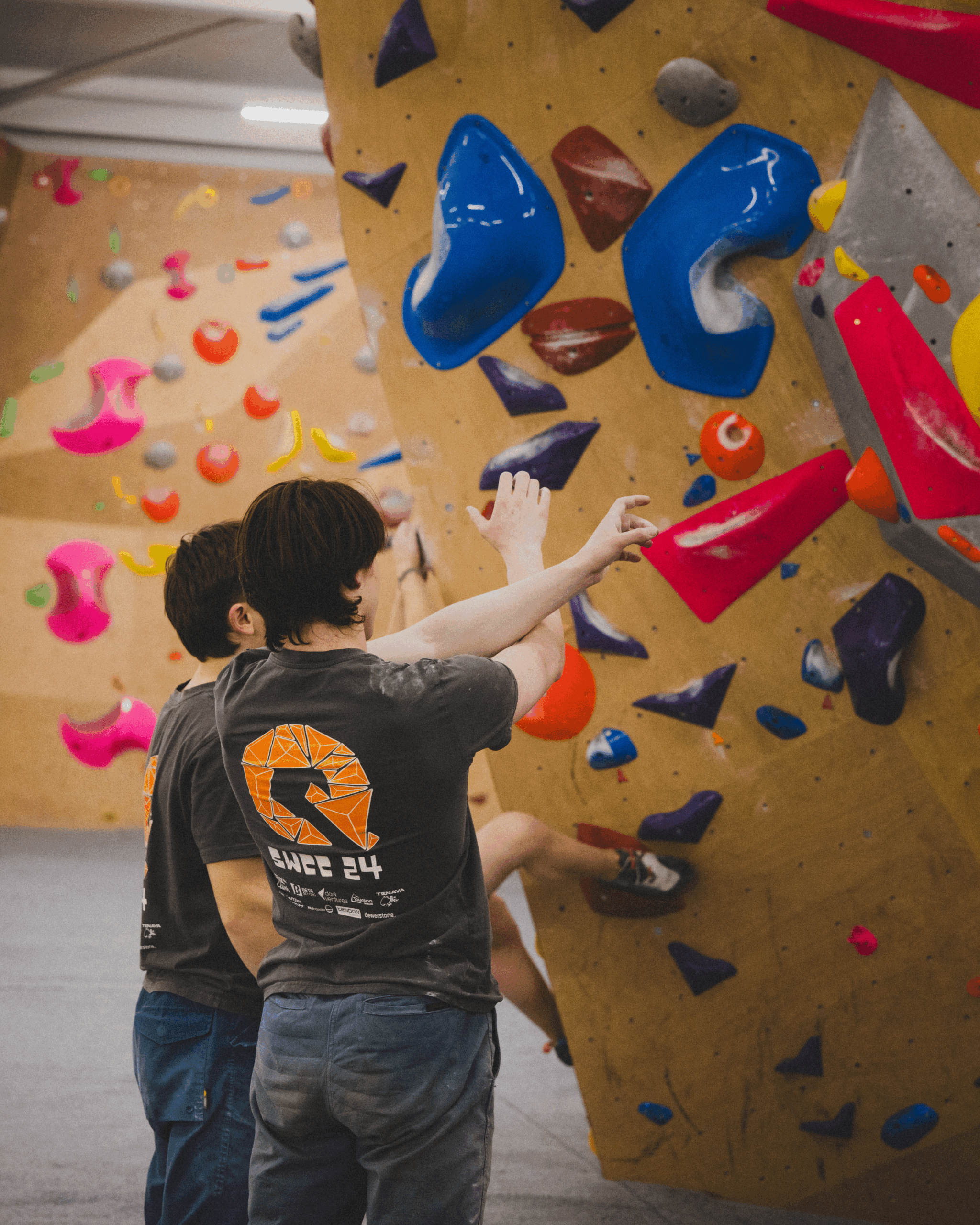 Tucked away on The Mezz, our dedicated beginner’s area features loads of super accessible problems for you to try in a quiet space of the centre. Across the rest of the walls we’ve mixed harder problems with intro and intermediate grades so you can climb alongside those with more experience. You’ll find a super friendly community of enthusiasts keen to share beta (that’s information about how to complete a route or problem in climbing speak!) and work together to crack each route!